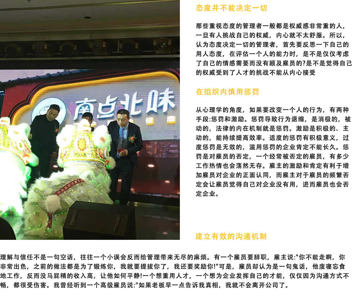 團隊精神的形成并不要求團隊成員犧牲自我,相反,揮灑個性、表現(xiàn)特長保證了成員共同完成任務目標而明確的協(xié)作意愿和協(xié)作方式則產(chǎn)生了真正的內(nèi)心動力。團隊精神是組織文化的一部分,良好的管理可以通過合適的組織形態(tài)將每個人安排至合適的崗位,充分發(fā)揮集體的潛能如果沒有正確的管理文化,沒有良好的從業(yè)心態(tài)和奉獻精神,就不會有團隊精神。